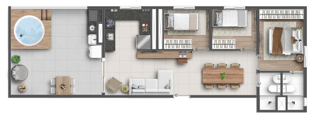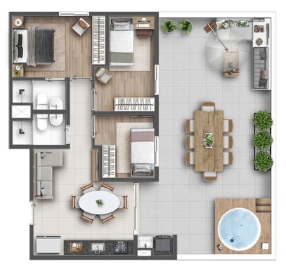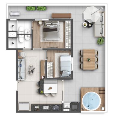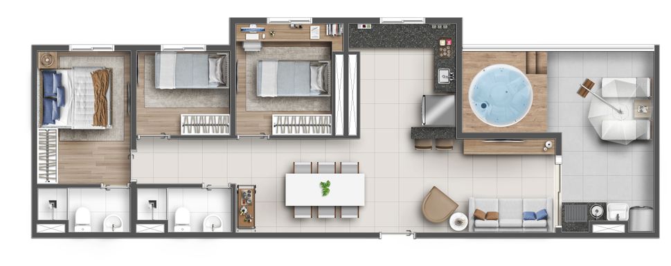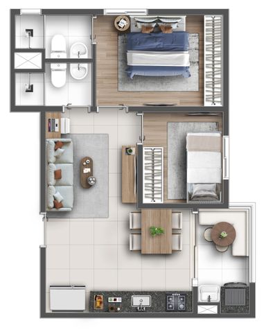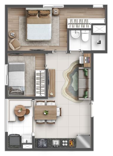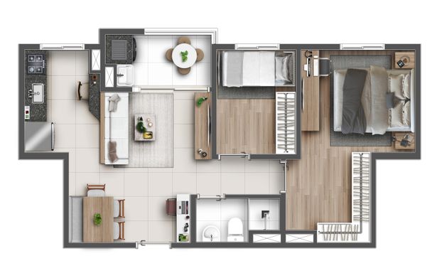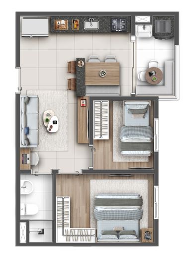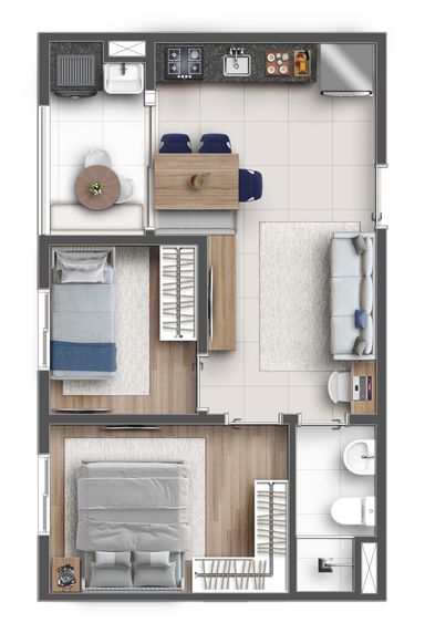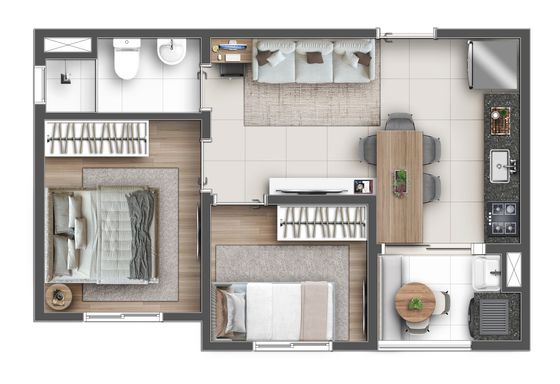 São apartamentos de 2 e 3 dormitórios, com opções de suíte e vaga de garagem, projetados para quem busca qualidade de vida e acessibilidade no dia a dia.