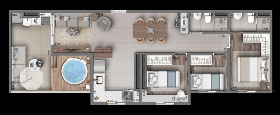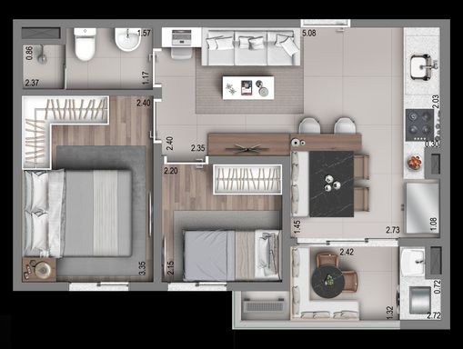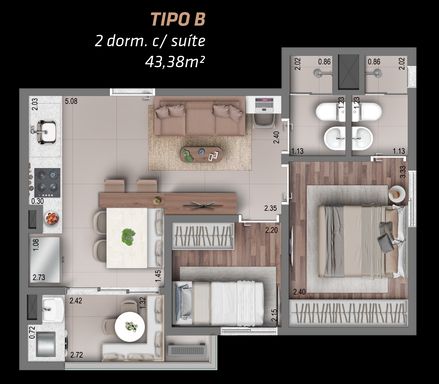 As unidades contam com 2 dormitórios, opções com varanda e vaga, perfeitas para quem quer unir conforto, privacidade e um espaço acolhedor para receber amigos, trabalhar ou simplesmente relaxar. O projeto da Graal se destaca pela qualidade nota mil: acabamentos superiores, plantas bem distribuídas, áreas comuns inteligentes e tudo que você espera de um empreendimento moderno.