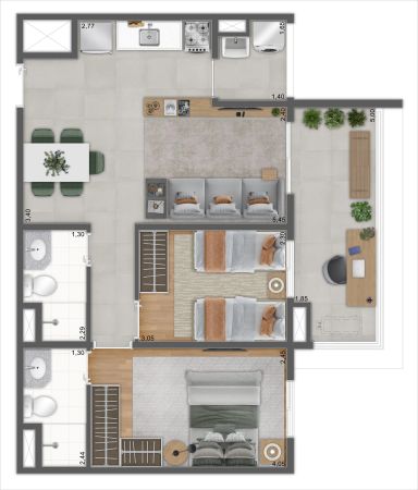 Plantas bem distribuídas que valorizam iluminação natural, ventilação e conforto urbano.