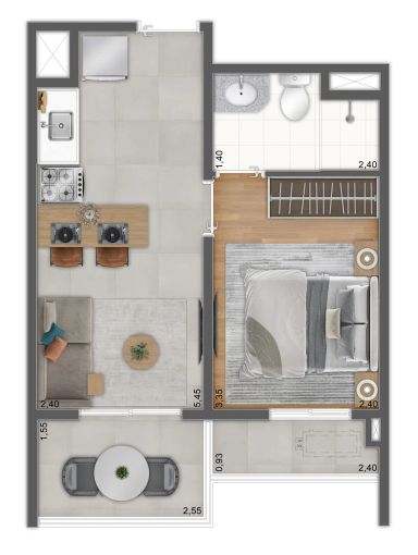 📍 1 dormitório com terraço