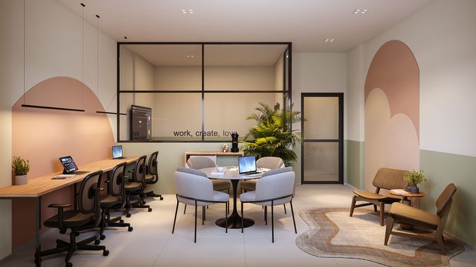 Área de serviço e cozinha com ventilação natural